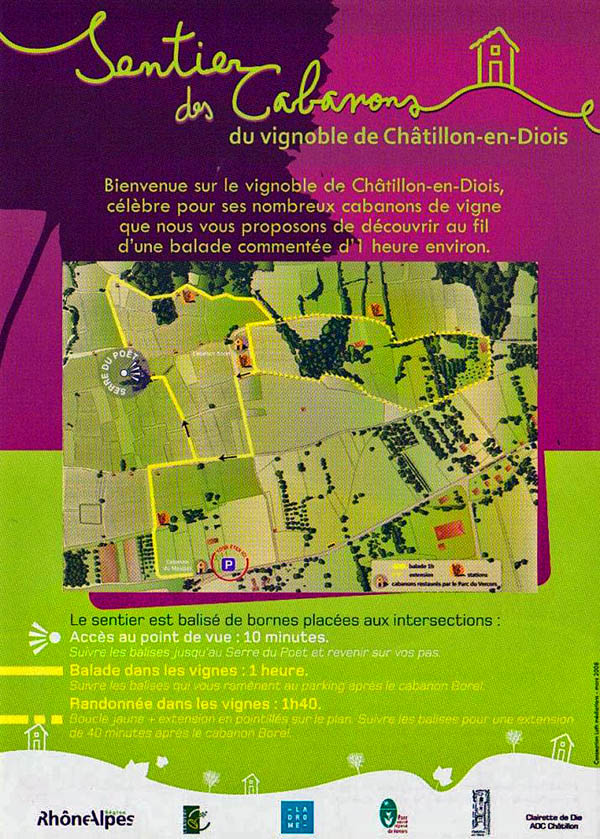 Ce sentier est un aménagement rythmé dans l’espace et le temps. Il a pu être réalisé grâce aux contributions techniques et financières du Parc Naturel Régional du Vercors, du programme Européen Leader plus, géré par la Communauté de Commune et de la commune de Châtillon.