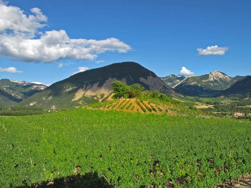 A la descente du Serre en direction du nord une allée ampélographique propose une collection de différents cépages de l’appellation Châtillon-en-Diois.